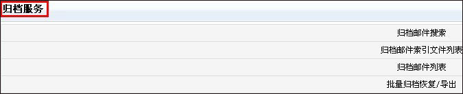 一旦管理員開啟了用戶的歸檔查看功能,用戶在登陸自己的郵箱后,左側(cè)郵件服務欄會出現(xiàn)“郵件歸檔”這個功能選項,可查看過去的歷史郵件,并對有需要的郵件執(zhí)行恢復操作。