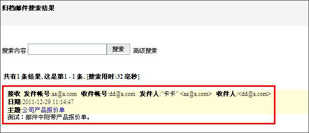 智能搜索:通過各種條件的關鍵字進行快速查找,從而更精確查找目標郵件。如下圖頁面: