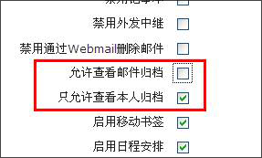 - 允許查看郵件歸檔:是否允許該用戶查看系統(tǒng)所有的歸檔郵件,此功能需要慎重啟用。