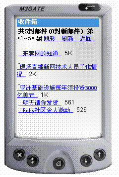 TurboMail提供手機(jī)郵箱網(wǎng)頁(yè)功能,支持各種品牌的手機(jī),用戶使用手機(jī)的網(wǎng)頁(yè)瀏覽器便可登錄個(gè)人郵箱,進(jìn)行收發(fā)郵件、查閱附件以及其他各種操作。