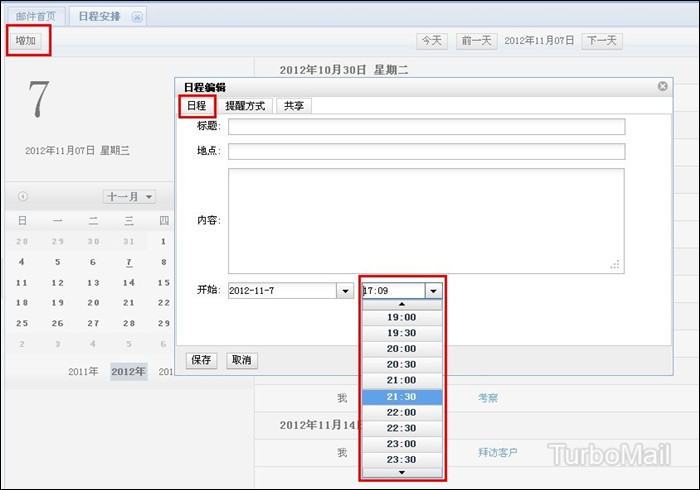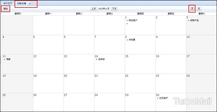 日程安排是TurboMail系統(tǒng)提供的網(wǎng)絡(luò)日歷,用戶通過日程安排,記錄和安排自己的日常工作,對(duì)于近期的工作計(jì)劃一目了然,提高工作效率。整個(gè)日程安排界面簡(jiǎn)潔美觀,可根據(jù)天、周、月安排工作。