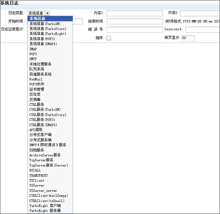 良好的日志查看功能是郵件系統(tǒng)維護的必備條件,它可以在事后還原系統(tǒng)的使用過程,尤其是產(chǎn)生故障時可以馬上看到故障產(chǎn)生的過程,可以迅速定位故障原因。與別的郵件服務(wù)器品牌的簡單的系統(tǒng)日志功能(非對系統(tǒng)運行記錄全面日志)相比,TurboMail的日志查看功能非常強大,它分層級記錄日志,在每個層級里又按照不同的類型進行分類記錄。