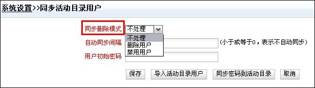 設(shè)置同步刪除模式即:在AD上刪除的用戶,在郵件系統(tǒng)上的處理模式,共分為三種模式,用戶可自主選擇。