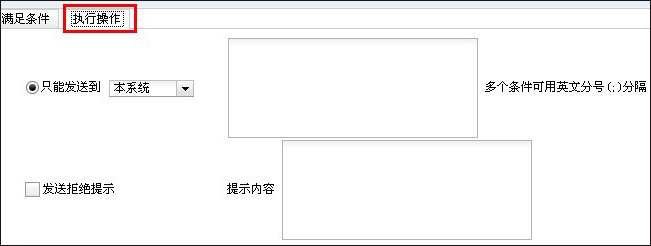- 執(zhí)行操作:對(duì)于符合條件的發(fā)送郵件,管理員可以選擇執(zhí)行不同的操作:發(fā)送到本系統(tǒng)、某個(gè)域、直接發(fā)到某些郵箱、IP等。