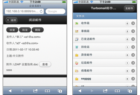 TurboMail繼發(fā)布短信提醒、手機(jī)郵箱、手機(jī)客戶端等移動(dòng)郵箱業(yè)務(wù)后,發(fā)布iPhone/Android版本web功能。