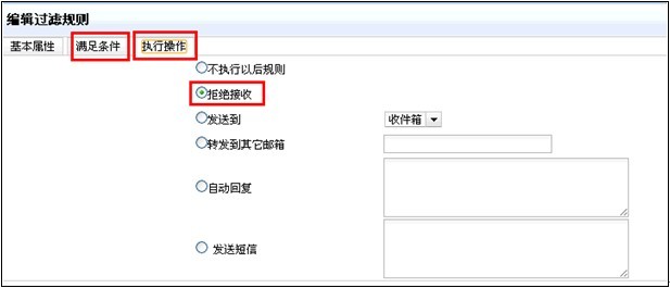 3)通過過濾器拒收某類郵件:用戶通過“個(gè)人設(shè)置”—“過濾器”,可從多方面條件設(shè)定要拒收含有某種特征的郵件,一旦系統(tǒng)檢測(cè)到符合拒收規(guī)則的郵件,則會(huì)自動(dòng)執(zhí)行拒收操作。