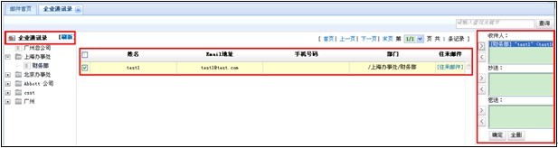 此外,用戶在寫信時(shí),可以直接選中某個(gè)部門或者某個(gè)組織,則用戶發(fā)信到這個(gè)部門或者組織,該部門或該組織下的用戶都能收到這封郵件。