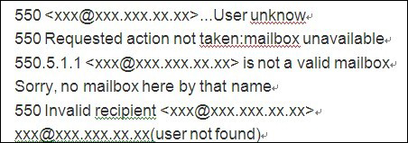 退信出現(xiàn)550 Requested action not taken:mailbox unavailable或者500Mailbox is not found或者550 Invalid recipient