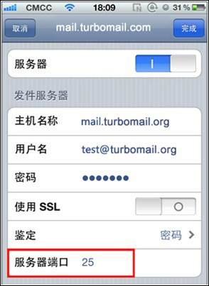 將默認服務器端口(587)修改為(25)同時關閉SSL開關: