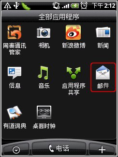 1. 打開(kāi)手機(jī),點(diǎn)擊進(jìn)入Android系統(tǒng)的“郵件”: