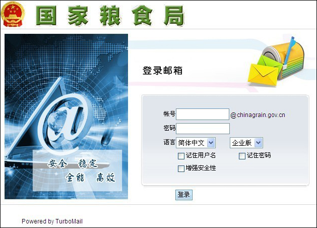 2010年中,國(guó)家糧食局針對(duì)TurboMail郵件系統(tǒng)的九層反垃圾引擎、郵件加密、系統(tǒng)監(jiān)控等方面做了嚴(yán)格的測(cè)試,并一直獲得國(guó)家糧食局技術(shù)工程師的一致認(rèn)同。日前,TurboMail郵件系統(tǒng)已經(jīng)投入了正式運(yùn)行使用。