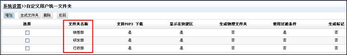進入系統(tǒng)管理后臺→系統(tǒng)設(shè)置→系統(tǒng)初始化→統(tǒng)一定義用戶文件夾→點擊增加→編輯相關(guān)文件夾信息→保存,如下圖顯示: