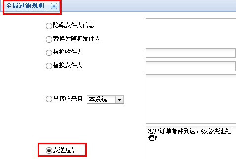 自設(shè)個人過濾條件,自己的郵箱在收到滿足條件的郵件時,系統(tǒng)自動發(fā)短信提醒自己。