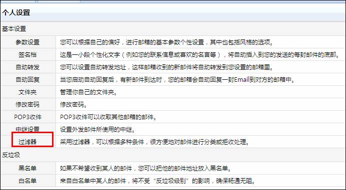 過濾器:采用過濾器,可以根據(jù)多種條件,很方便地對郵件進行分揀、拒收等處理。