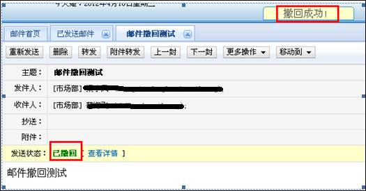 2. 打開已發(fā)送給系統(tǒng)內(nèi)的用戶郵件,點(diǎn)擊撤回。