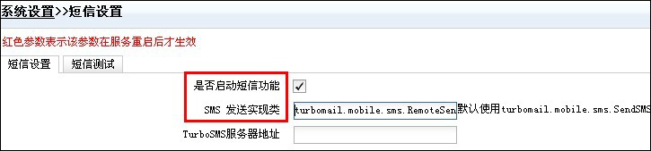 SMS 發(fā)送實現(xiàn)類填寫:turbomail.mobile.sms.RemoteSendSMS