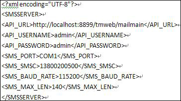 在短信服務器安裝目錄,用文本方式打開smsserver\conf\smsserver.xml。