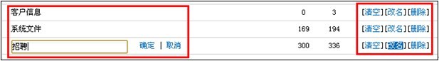對(duì)于自建文件夾,用戶可以進(jìn)行清空,改名, 刪除操作。在郵件首頁(yè)中,用戶可對(duì)各個(gè)自定義文件夾進(jìn)行各種操作: