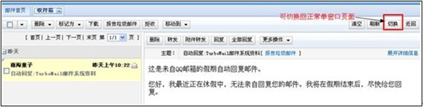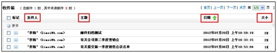 在收件箱中,TurboMail提供多種不同的主題元素【包括發(fā)件人、主題、日期和郵件大小】查看收件箱,用戶可以根據(jù)自己的情況來進(jìn)行調(diào)整,系統(tǒng)默認(rèn)按照郵件到達(dá)的先后順序顯示所收到的郵件。