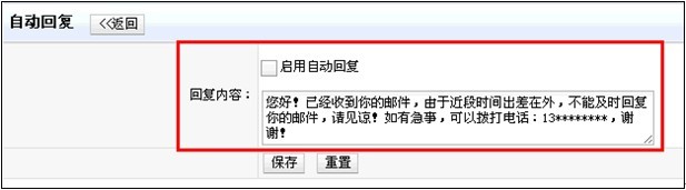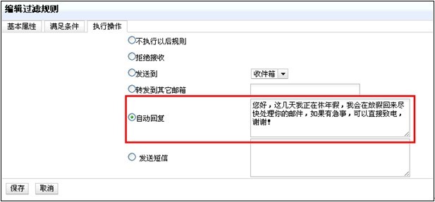 2)通過個人過濾器,系統(tǒng)對符合條件的郵件執(zhí)行自動回復。